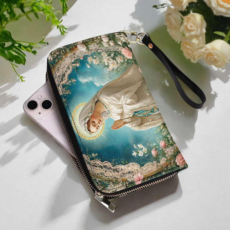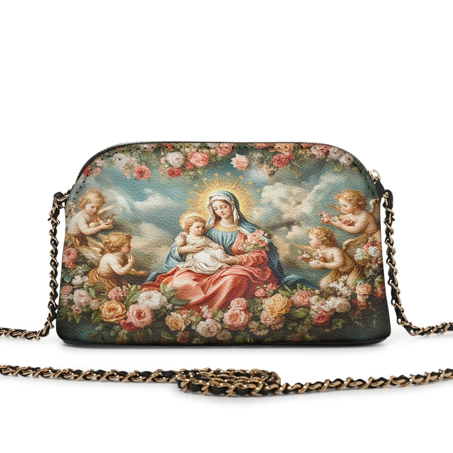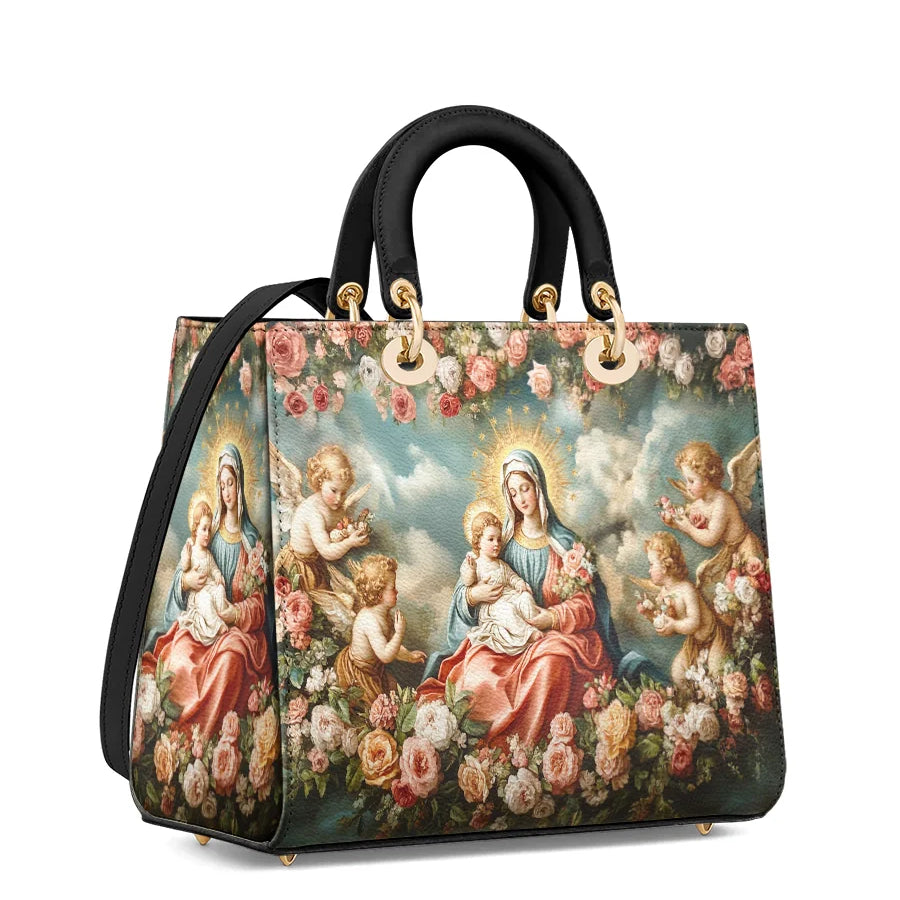 Surrounded by heavenly clouds and blooming roses, Halo of Rose captures the tender spirit of devotion through graceful artwork and timeless faith.