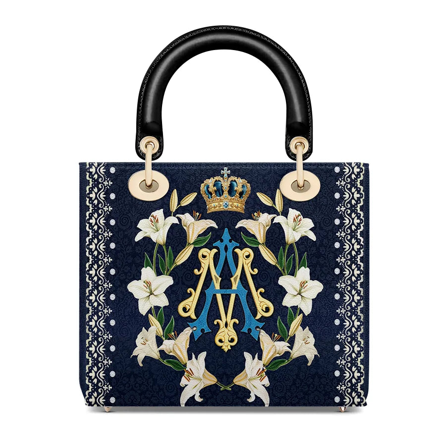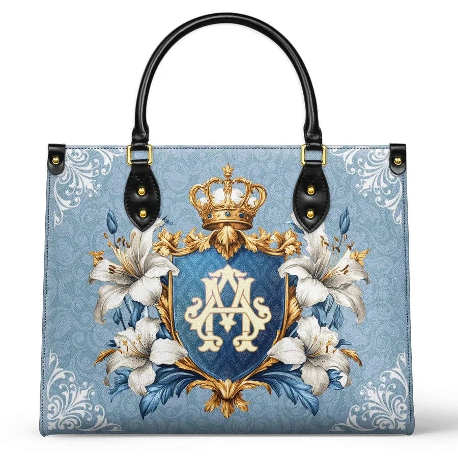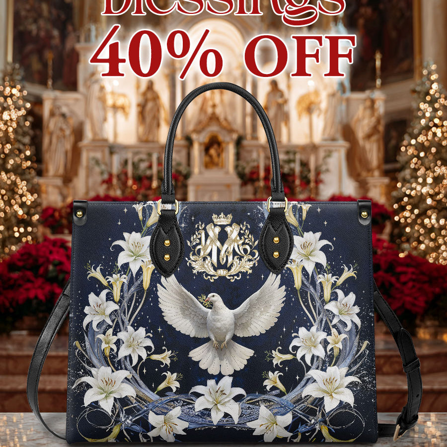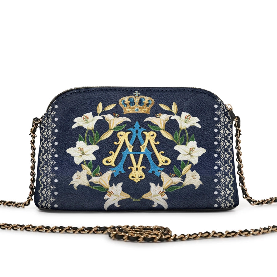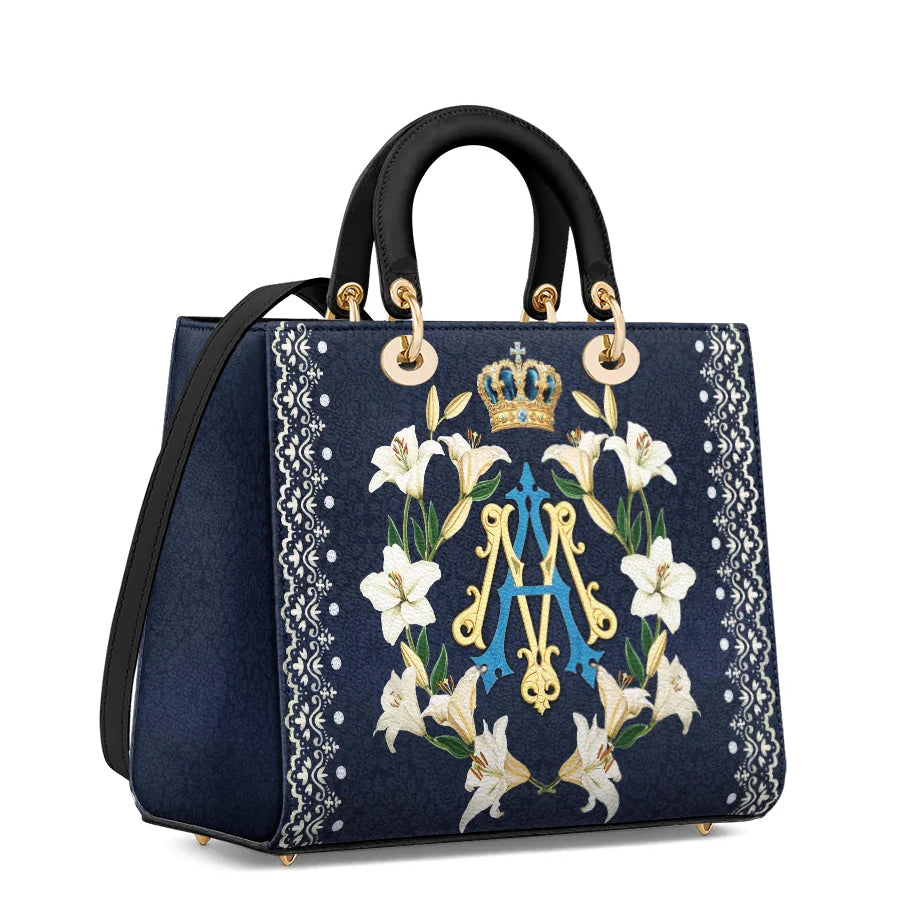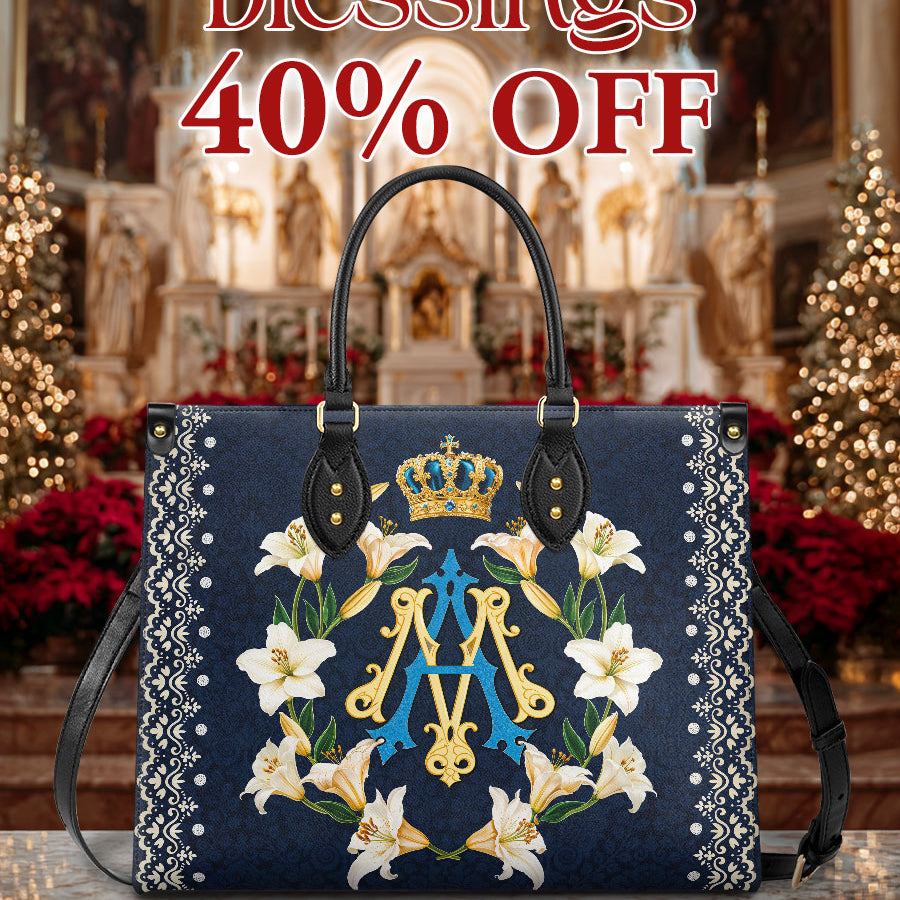 Delicate as a lily, regal as a crown — the Crown of Grace Collection is a visual hymn to the Blessed Virgin Mary. Each piece is adorned with Marian blue, royal gold, and blooming white lilies — symbols of purity, protection, and heavenly favor.