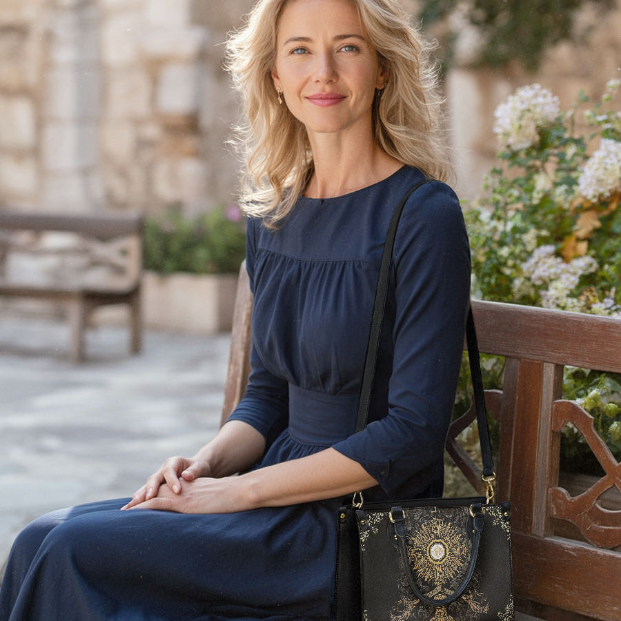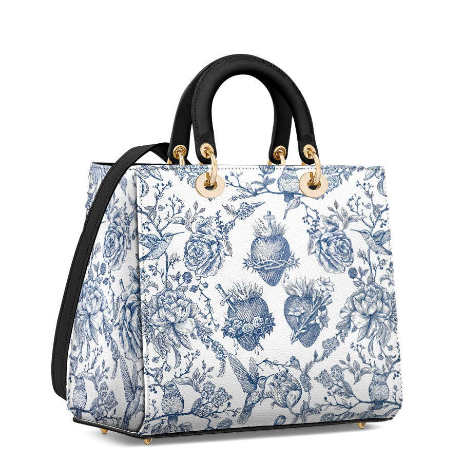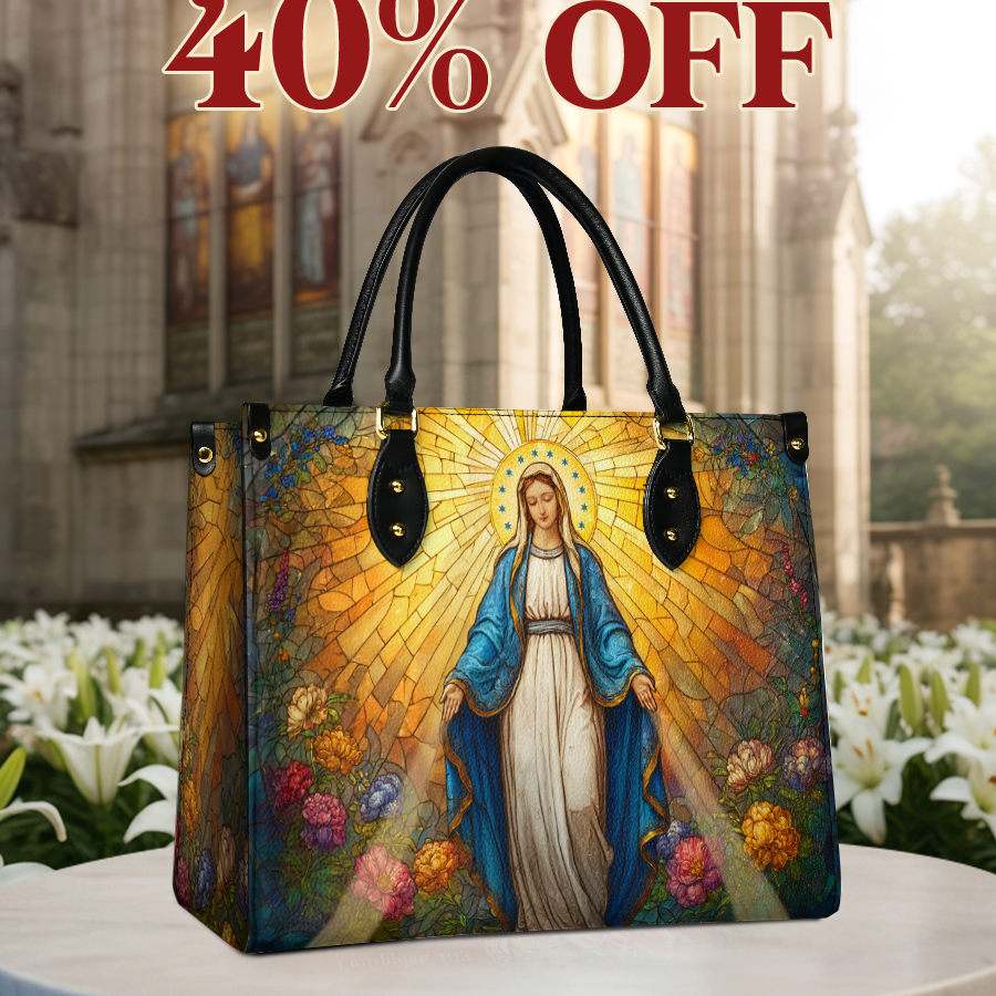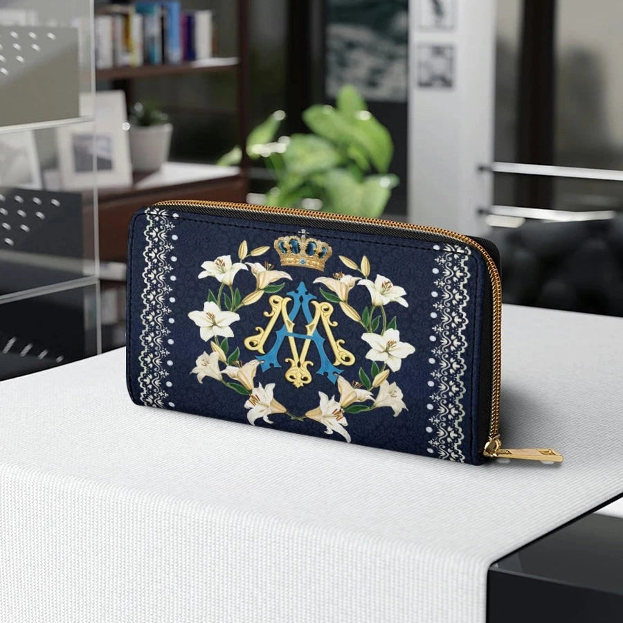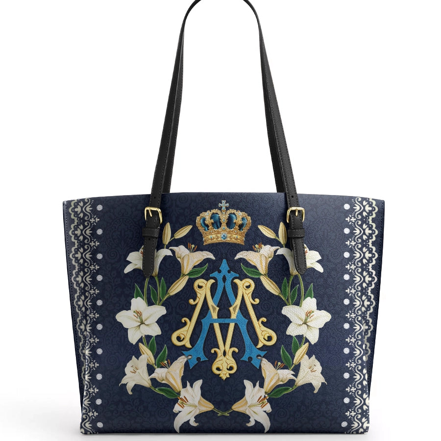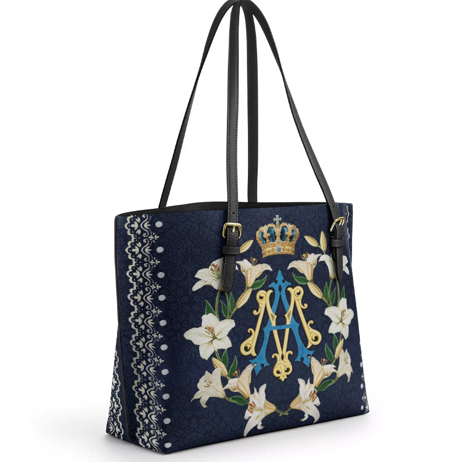 Delicate as a lily, regal as a crown — the Crown of Grace Collection is a visual hymn to the Blessed Virgin Mary. Each piece is adorned with Marian blue, royal gold, and blooming white lilies — symbols of purity, protection, and heavenly favor.