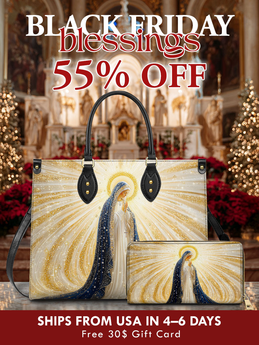 This elegant set features a radiant image of the Blessed Virgin Mary, surrounded by golden light — a symbol of purity, grace, and divine presence. Designed for women of faith, it serves as a quiet reminder of devotion in everyday life.