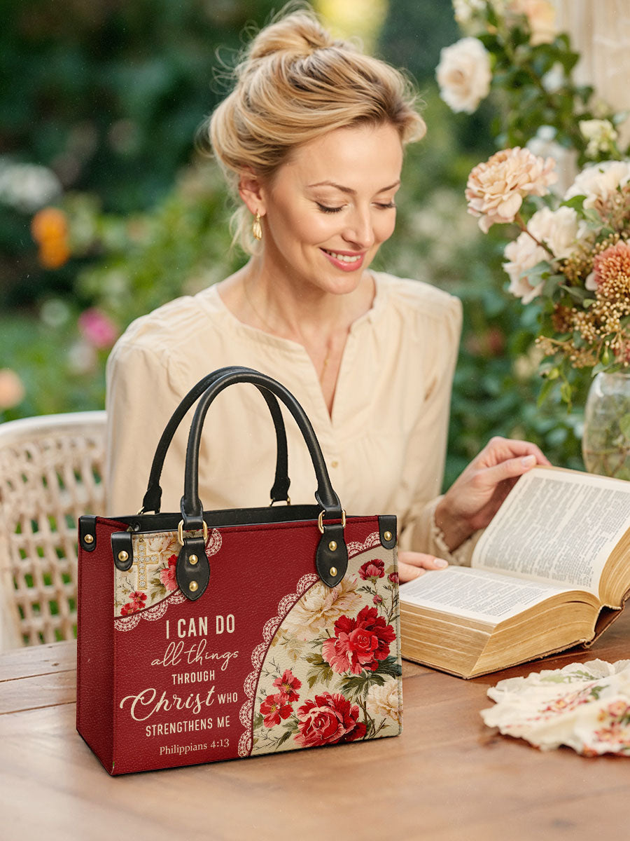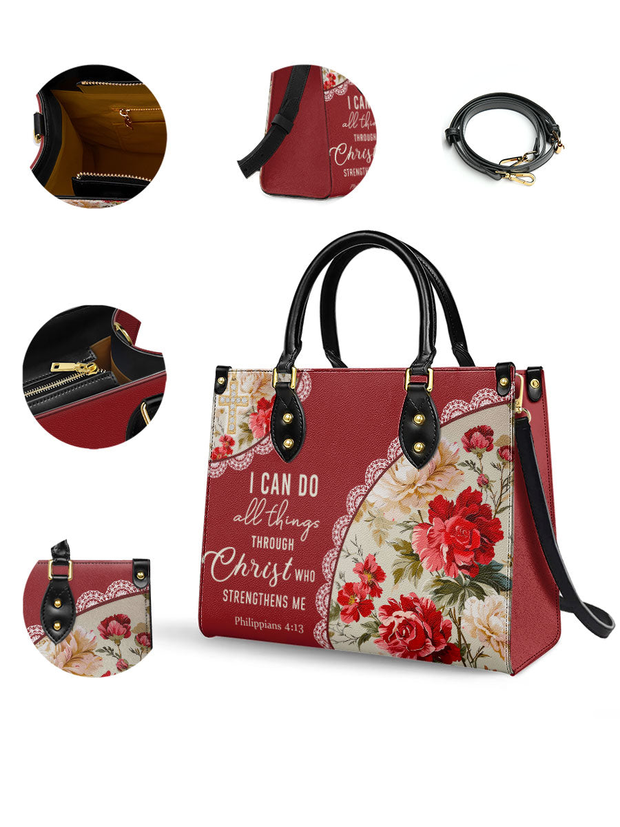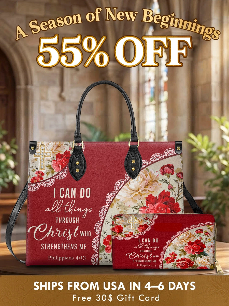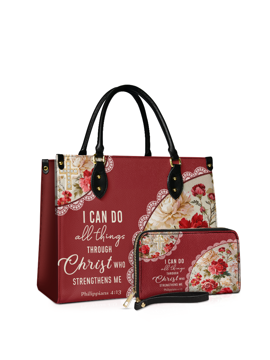 The structured handbag offers elegance and ample space for your daily journey, while the matching wallet keeps your essentials secure and organized. Together, they serve as both practical companions and daily affirmations of the strength found in Christ.