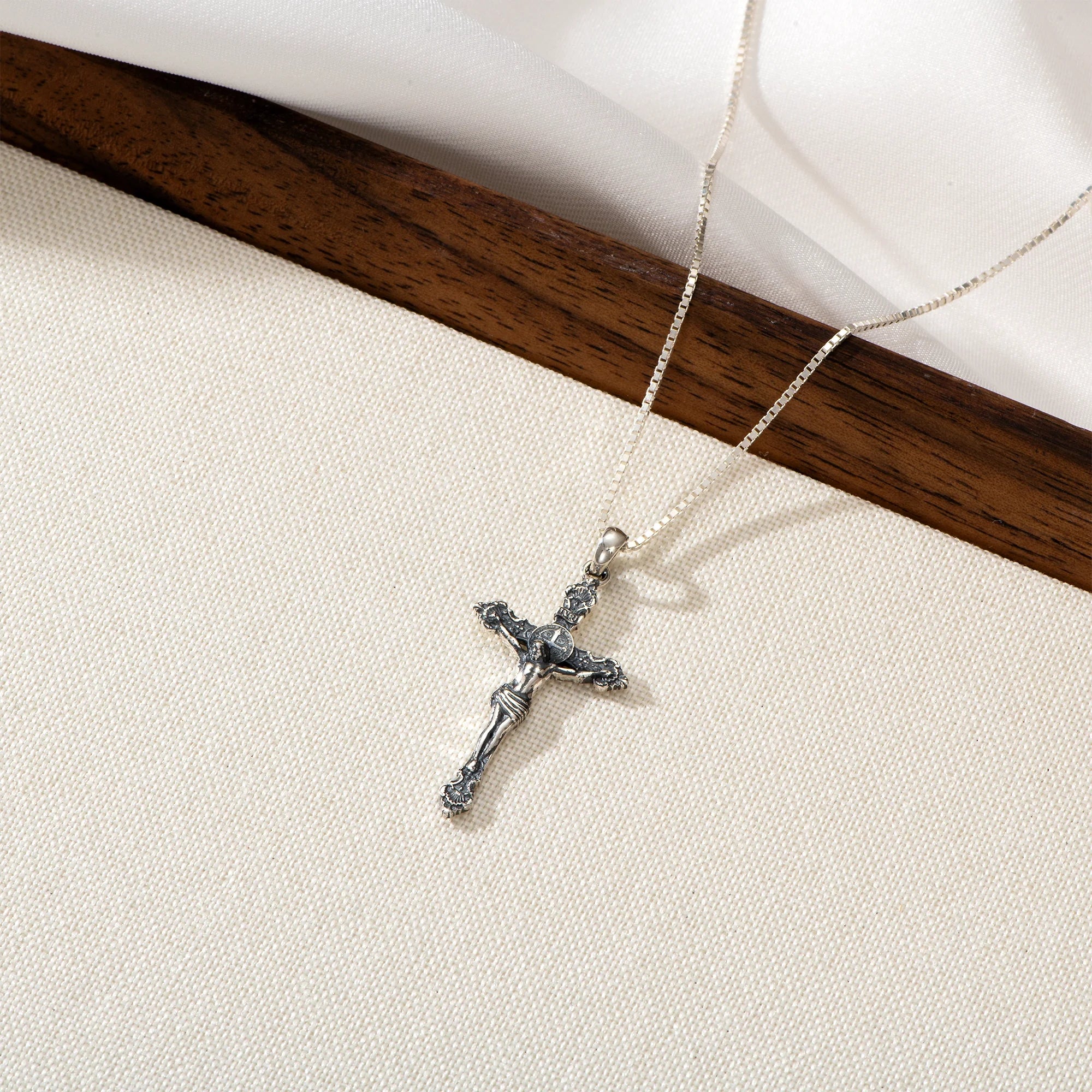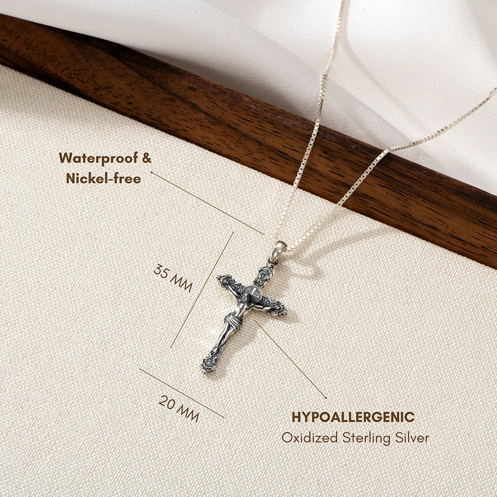 Catholight St. Benedict Crucifix Necklace in Oxidized Sterling Silver