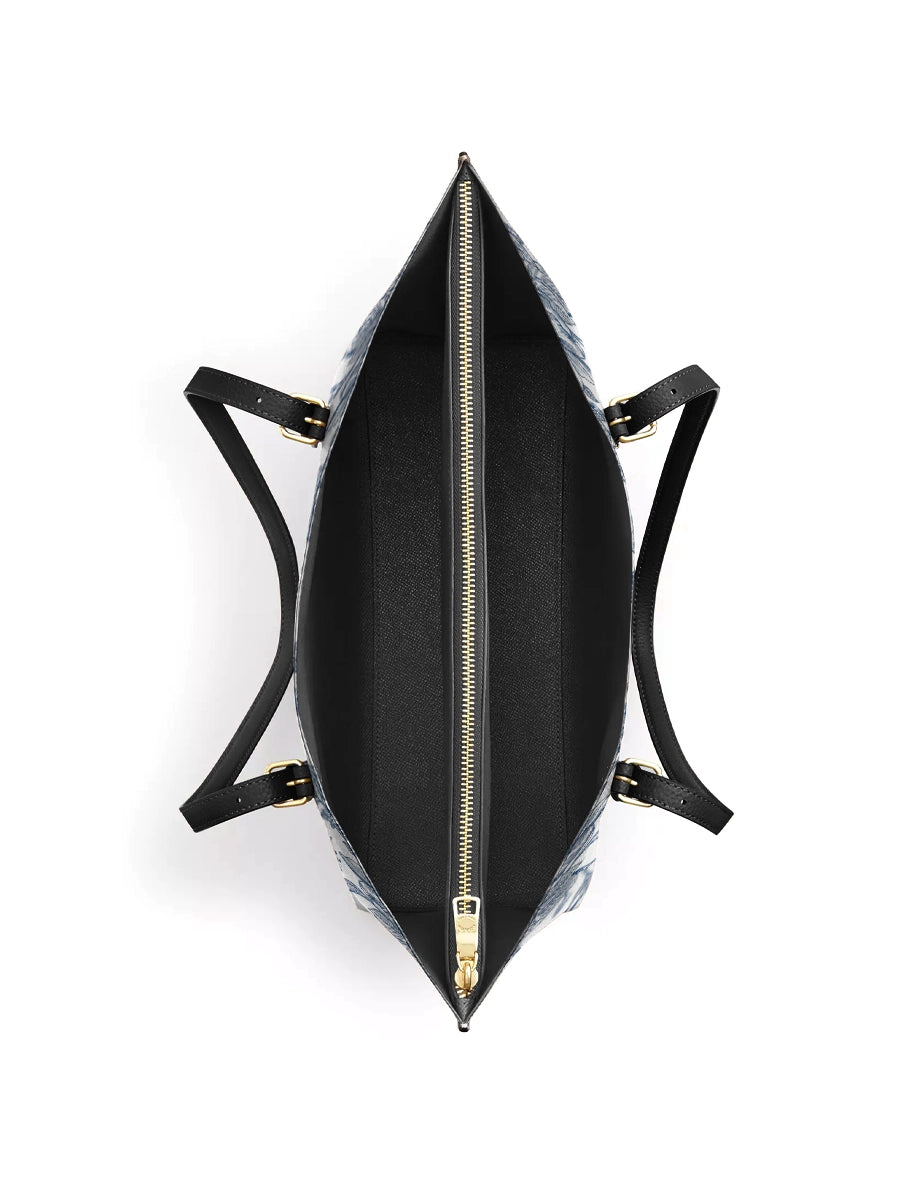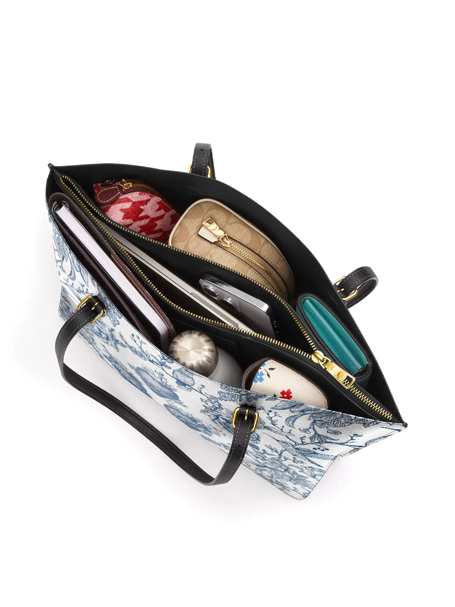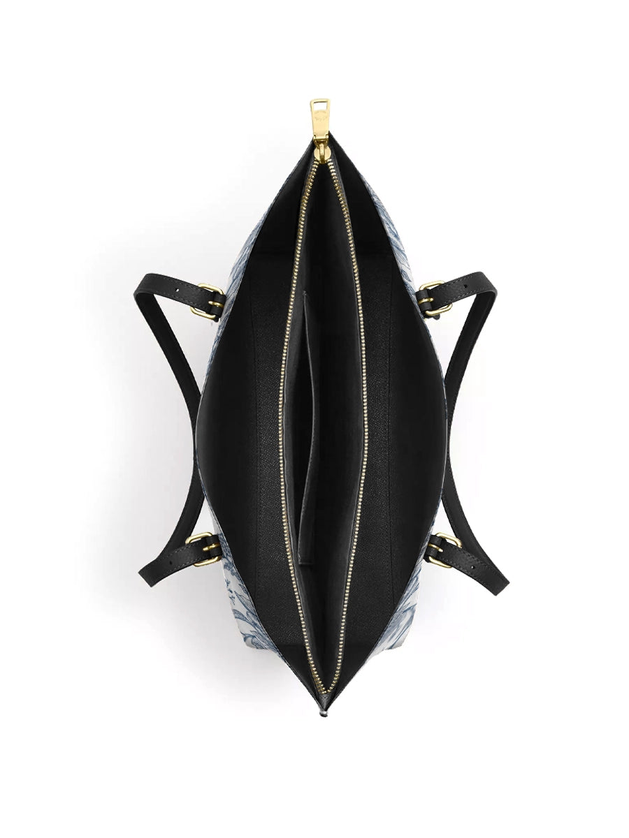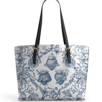 Catholight Sacred Elegance: Blue and White Devotion Leather Tote Bag