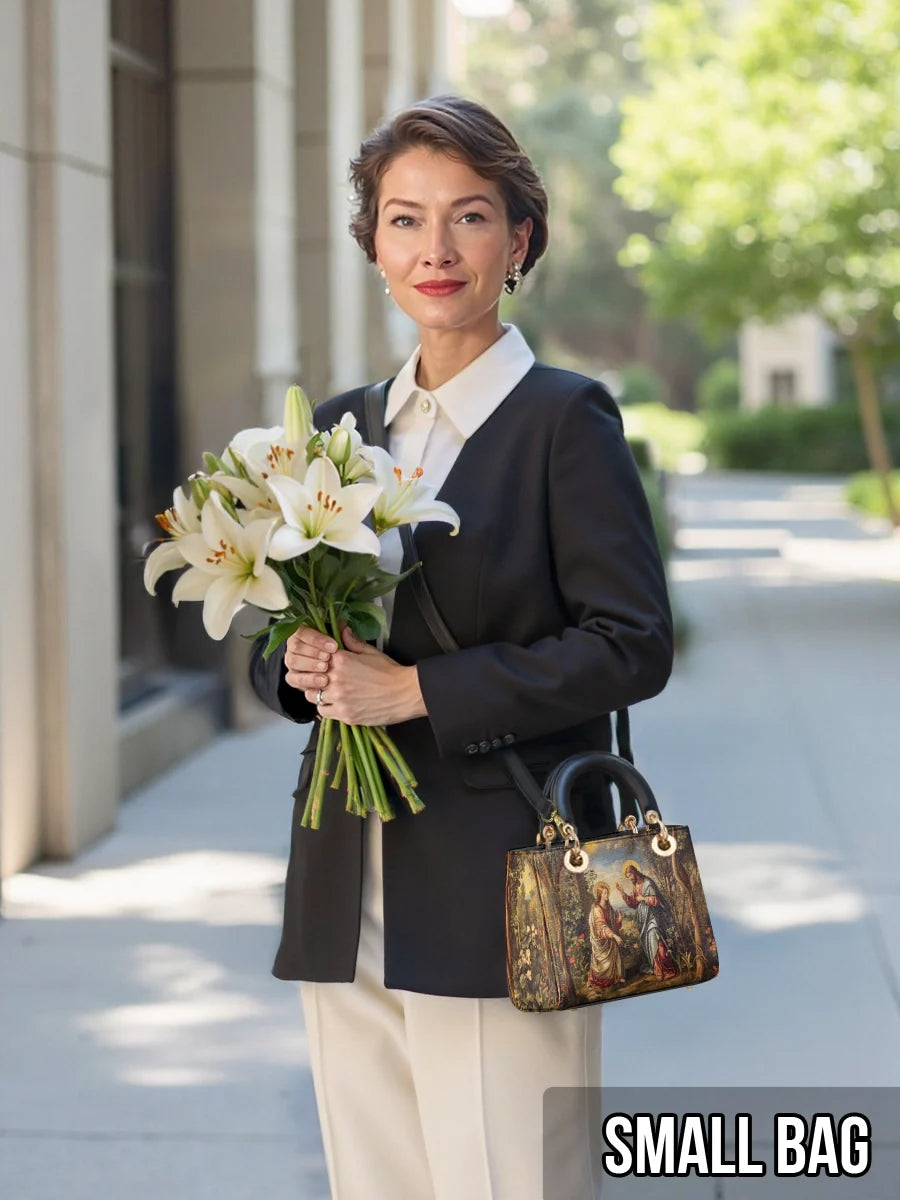 Whether as a cherished personal item or a thoughtful gift, the "Christ and Mary Magdalene" bag is perfect for those who seek to carry a message of hope and devotion with them. Ideal for church, special occasions, or everyday use, it seamlessly combines elegance and profound spiritual meaning.