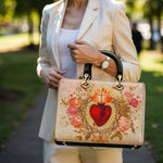Set against a warm, vintage-inspired background, this Lady Leather Bag blends timeless faith with elegant artistry. It serves as a meaningful companion for prayerful moments, church gatherings, or daily reflection, reminding the heart to remain open to love, grace, and compassion. A beautiful expression of devotion for Catholic women who hold the Sacred Heart close.