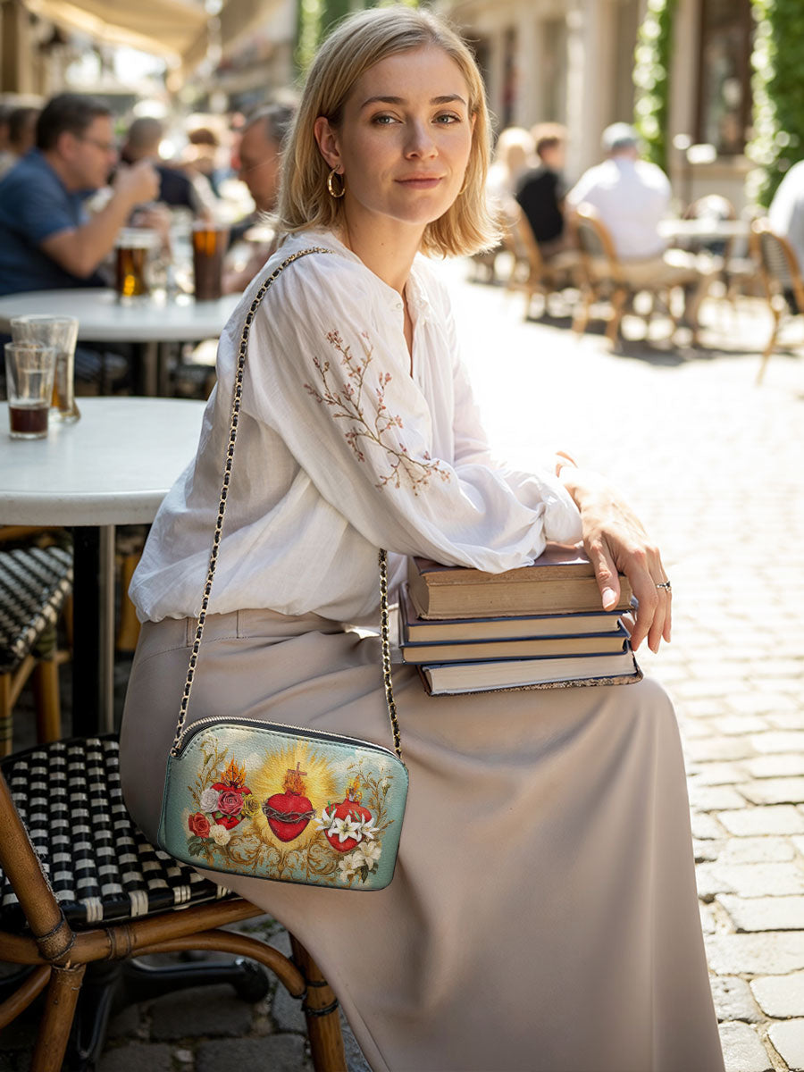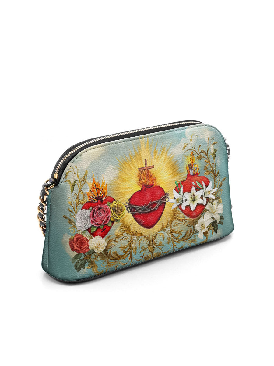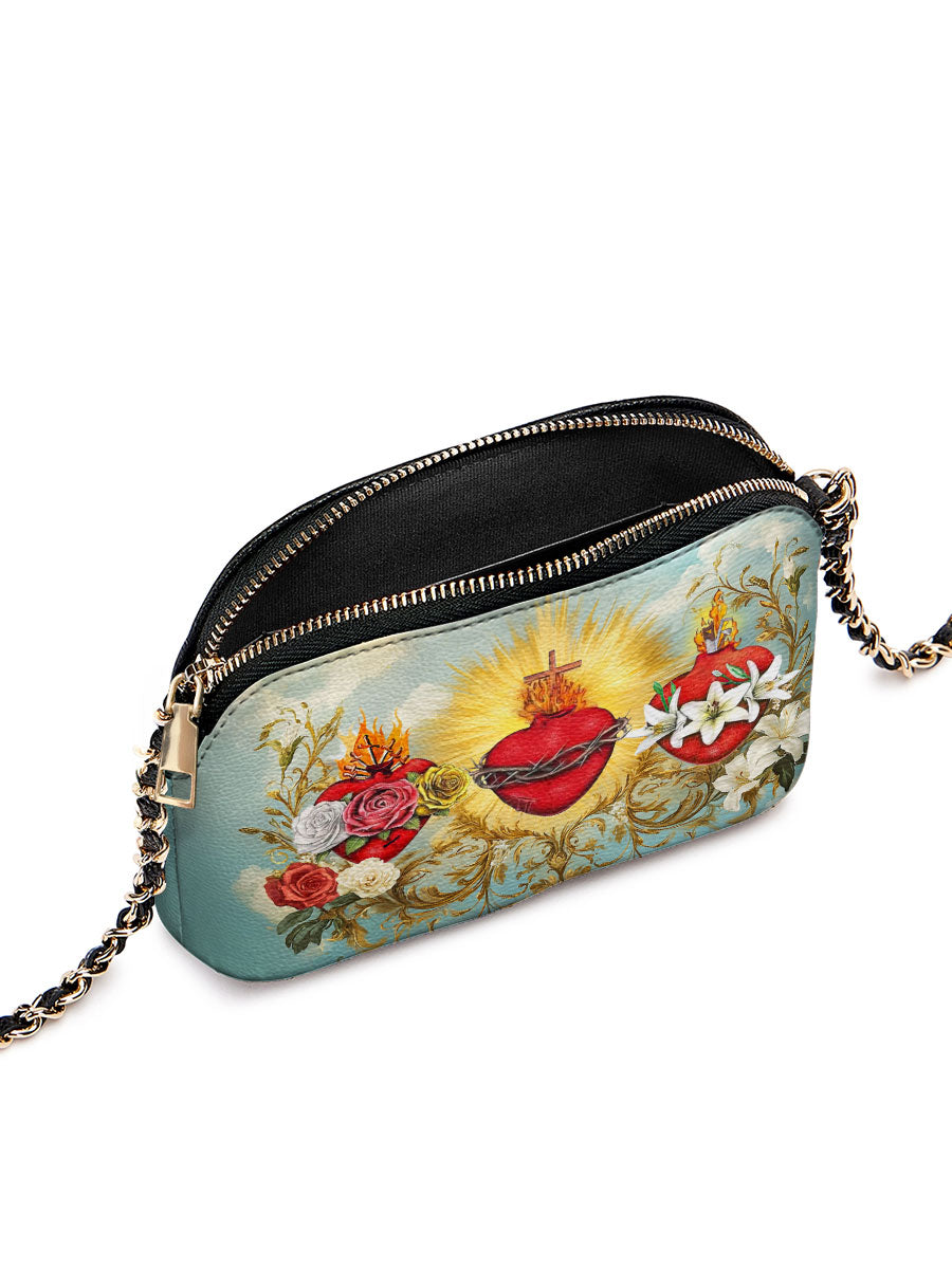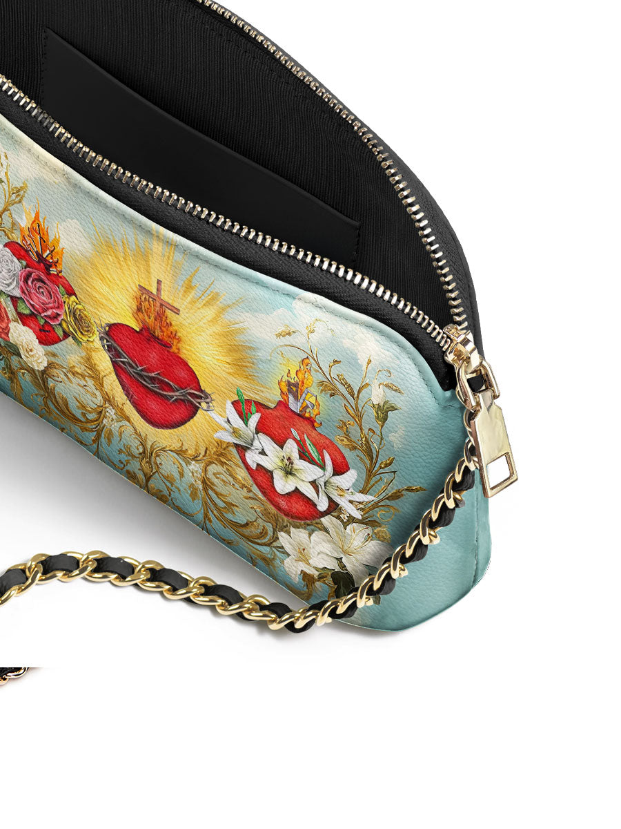 Designed with grace and intention, the Catholight Crossbody Bag is a quiet expression of faith and elegance. Its compact form, gold-accented chain strap, and symbolic artwork make it a meaningful companion for both daily life and sacred moments.