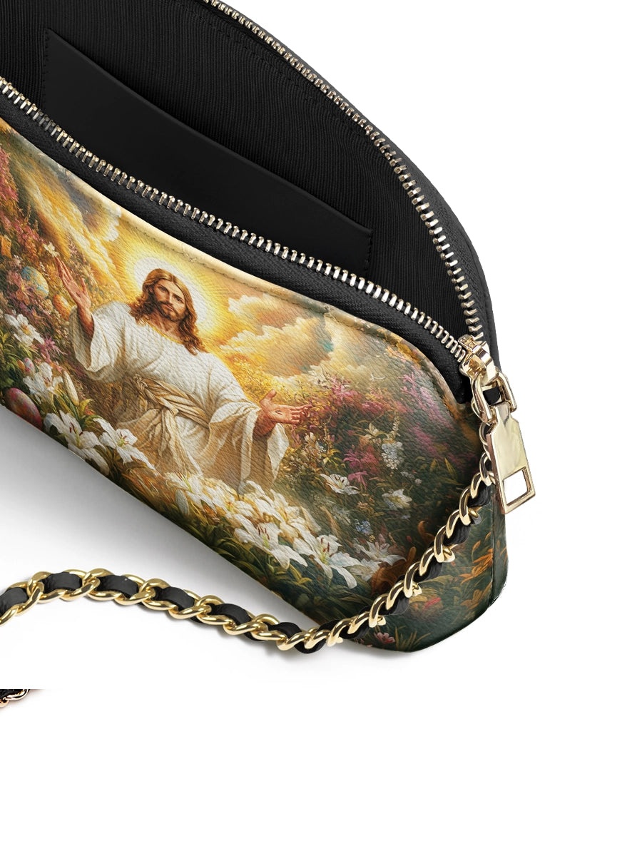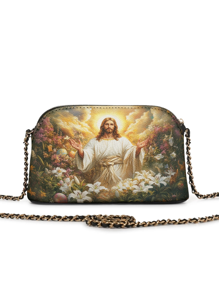 Designed with grace and intention, the Catholight Crossbody Bag is a quiet expression of faith and elegance. Its compact form, gold-accented chain strap, and symbolic artwork make it a meaningful companion for both daily life and sacred moments.