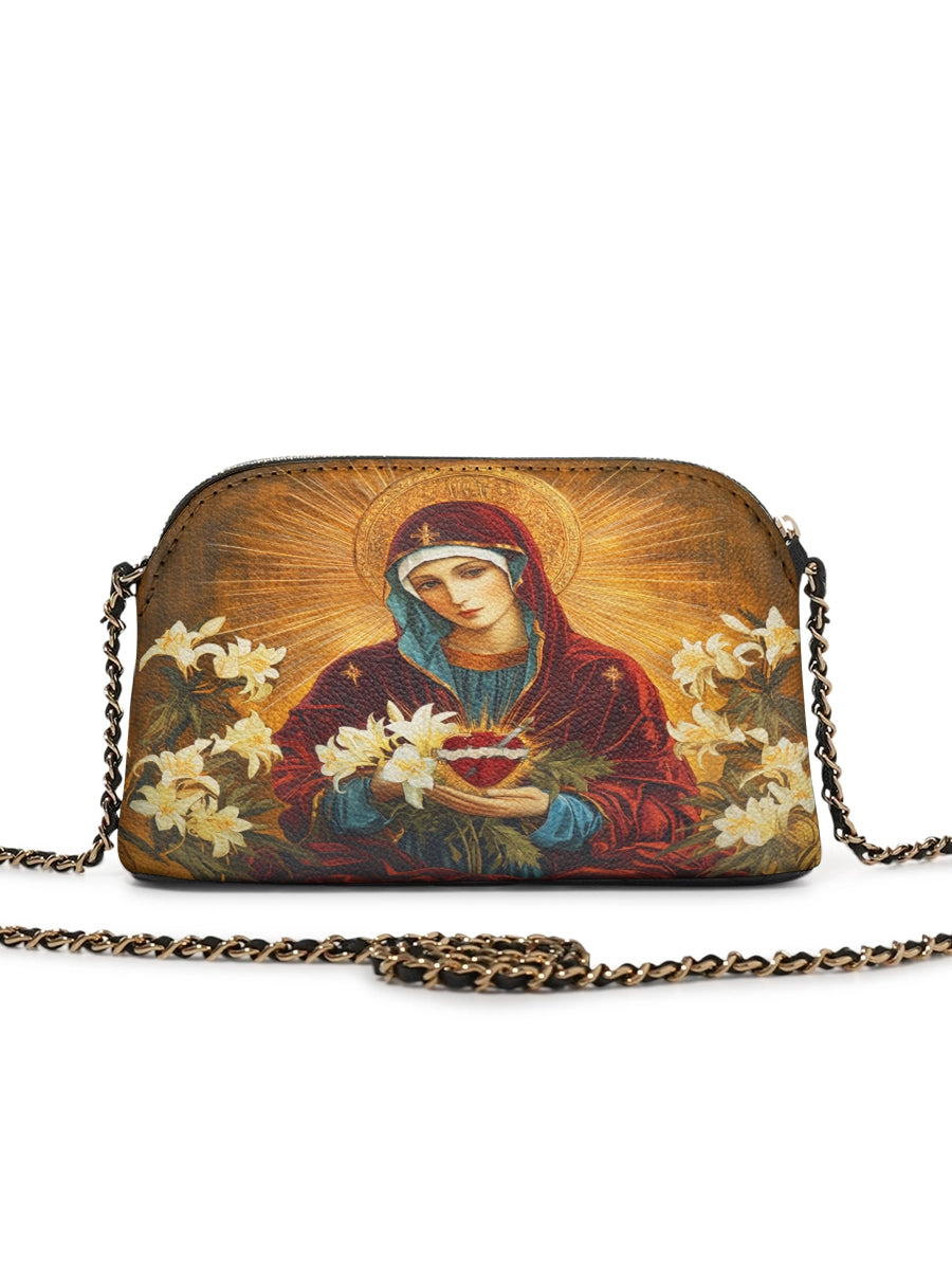 Designed with grace and intention, the Catholight Crossbody Bag is a quiet expression of faith and elegance. Its compact form, gold-accented chain strap, and symbolic artwork make it a meaningful companion for both daily life and sacred moments.