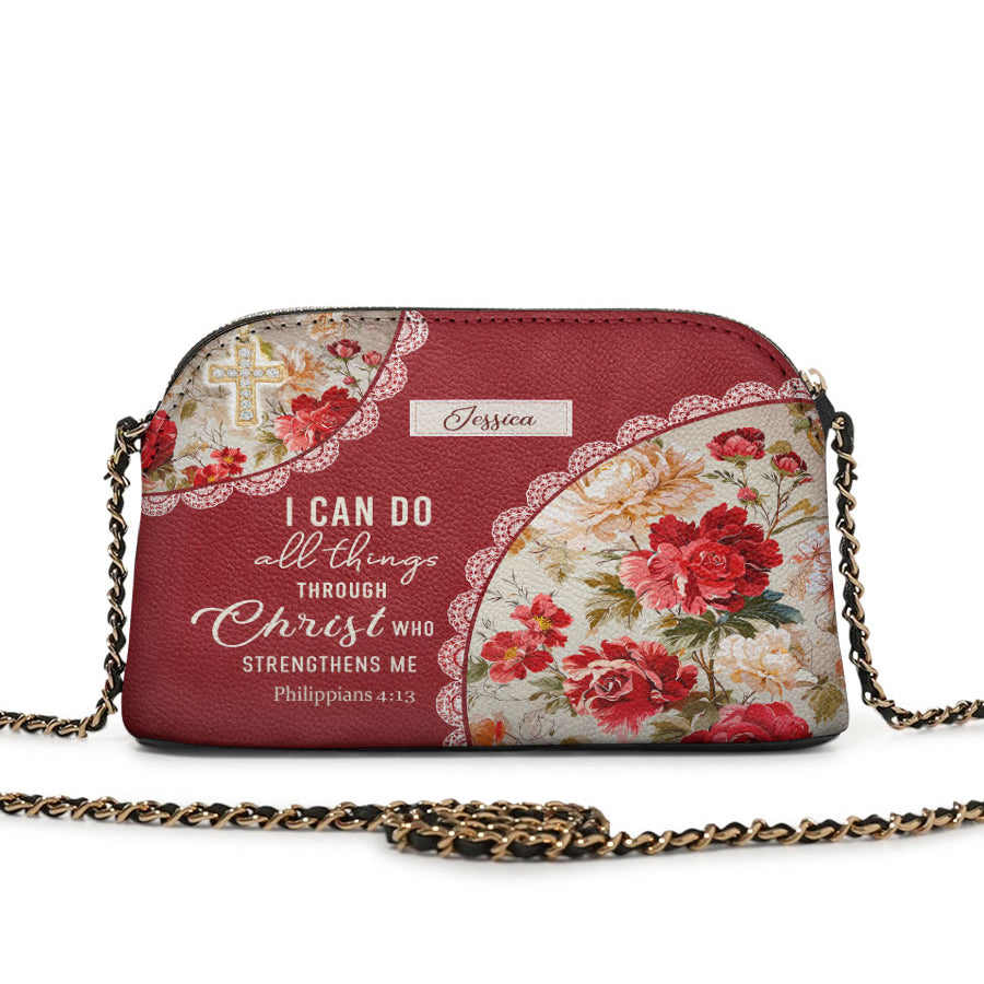 Catholight Blooming With Faith Personalized Leather Crossbody Bag
