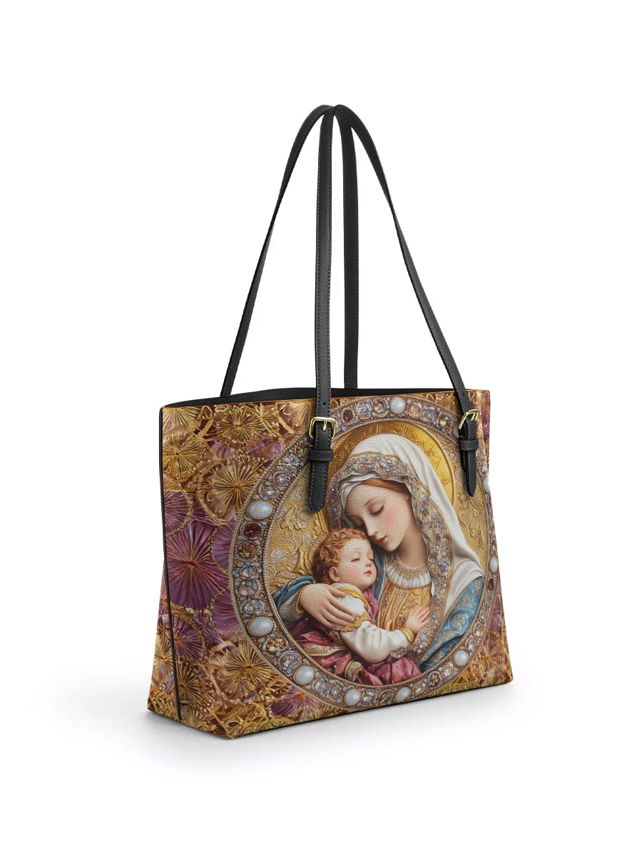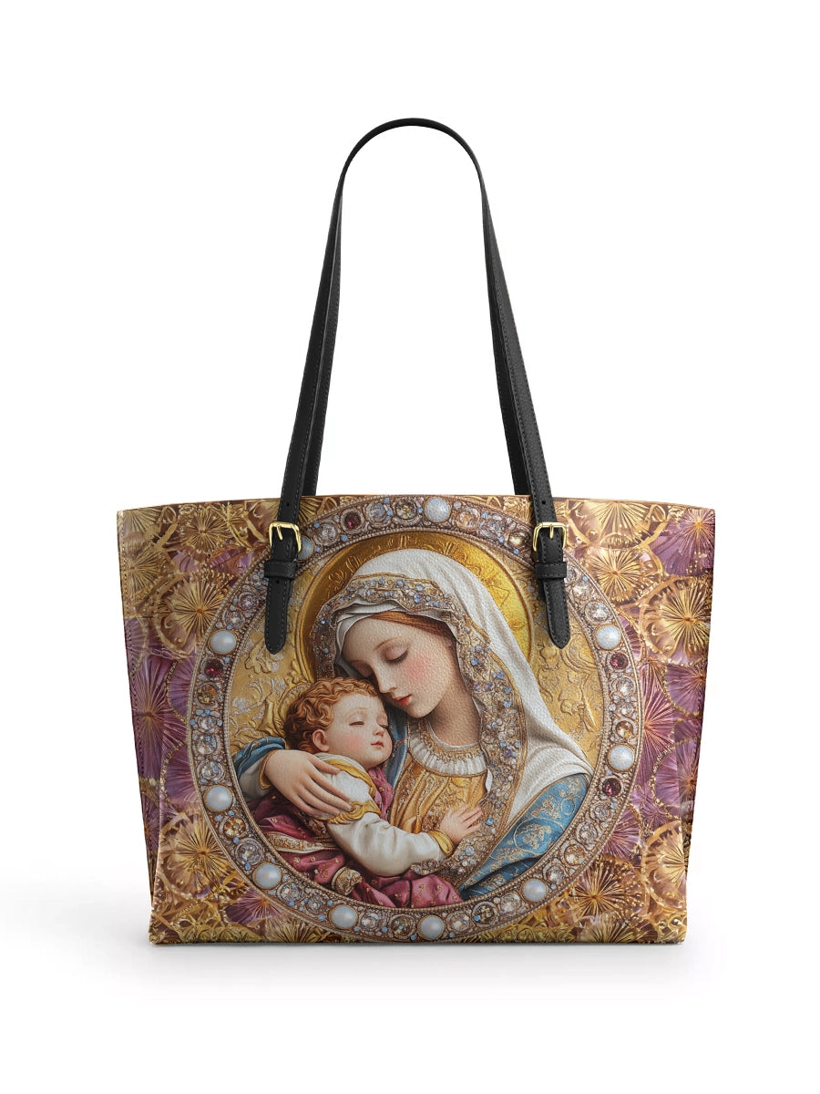 Catholight Divine Madonna And Child Leather Tote Bags