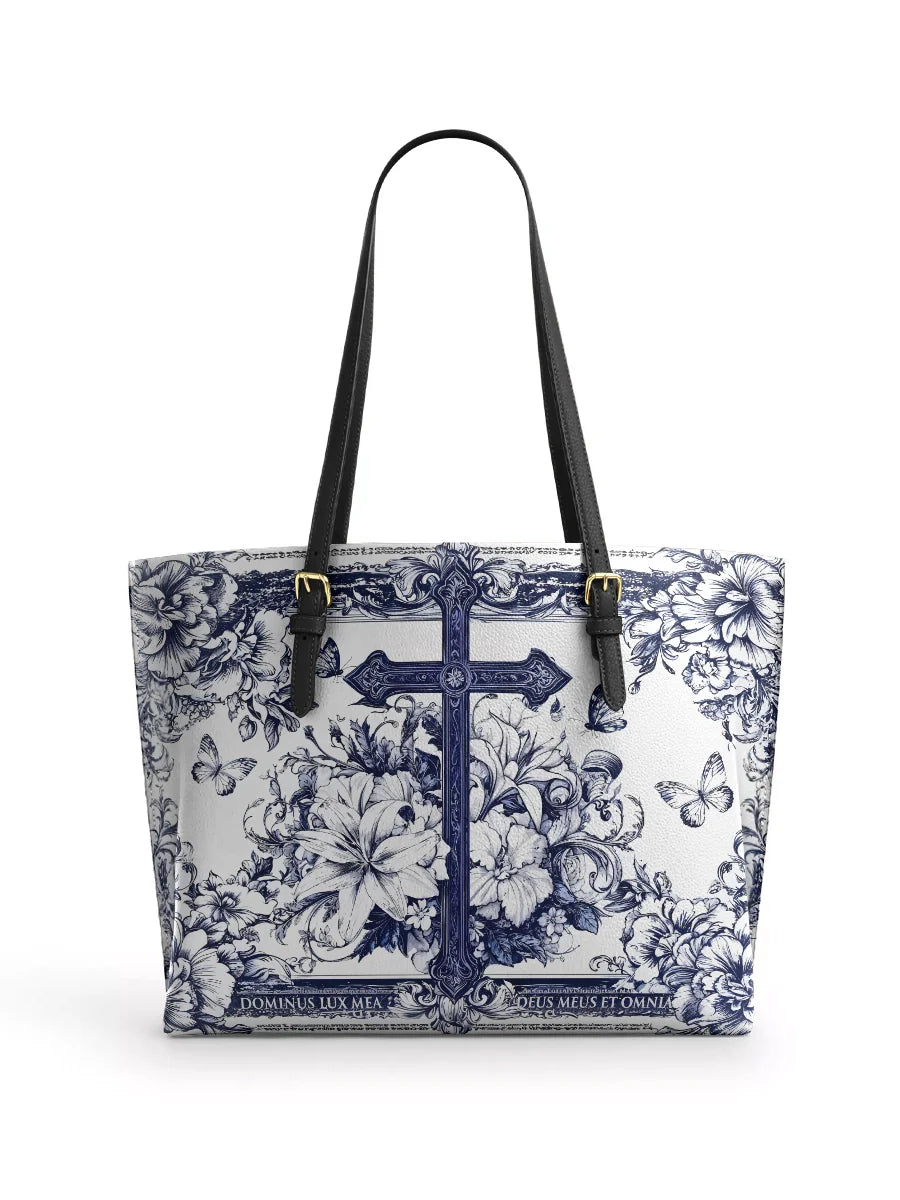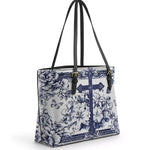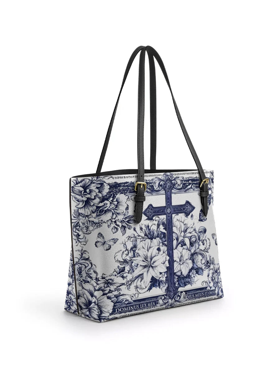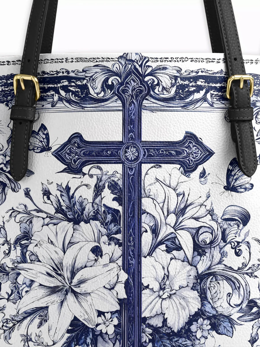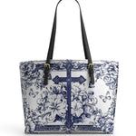 Catholight The Cross Amidst Blooming Faith Leather Tote Bag