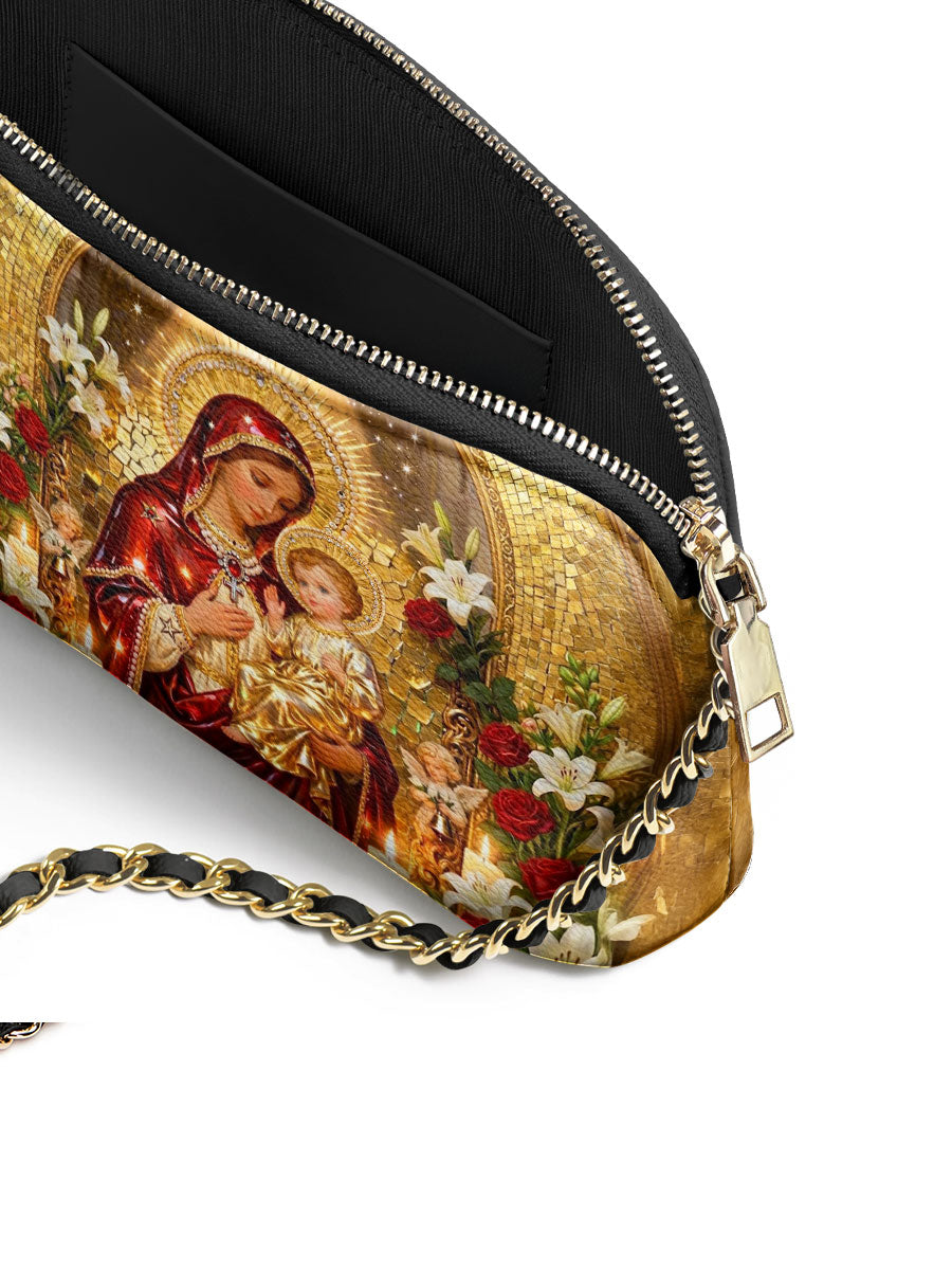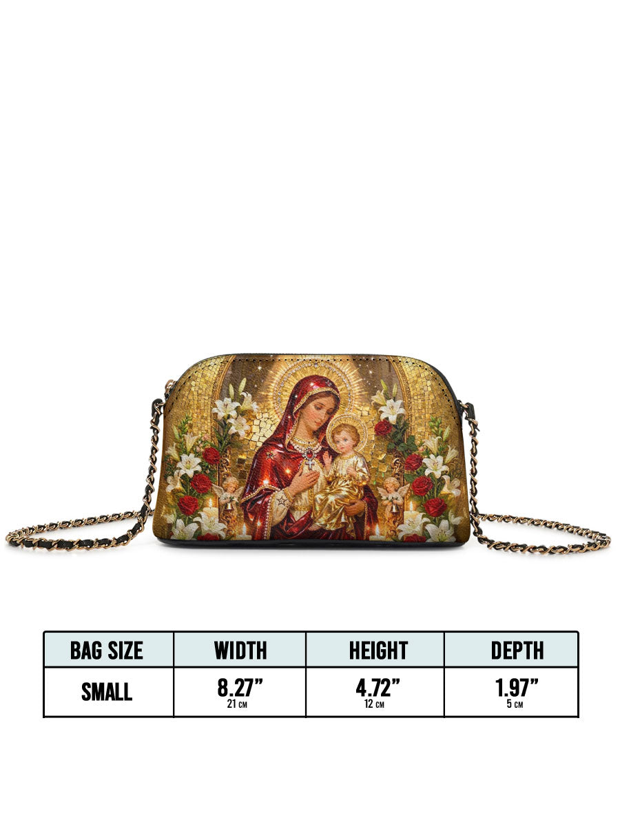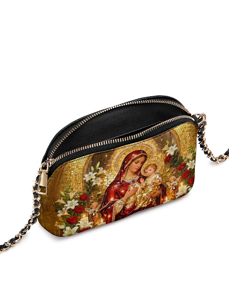 Designed with grace and intention, the Catholight Crossbody Bag is a quiet expression of faith and elegance. Its compact form, gold-accented chain strap, and symbolic artwork make it a meaningful companion for both daily life and sacred moments.
