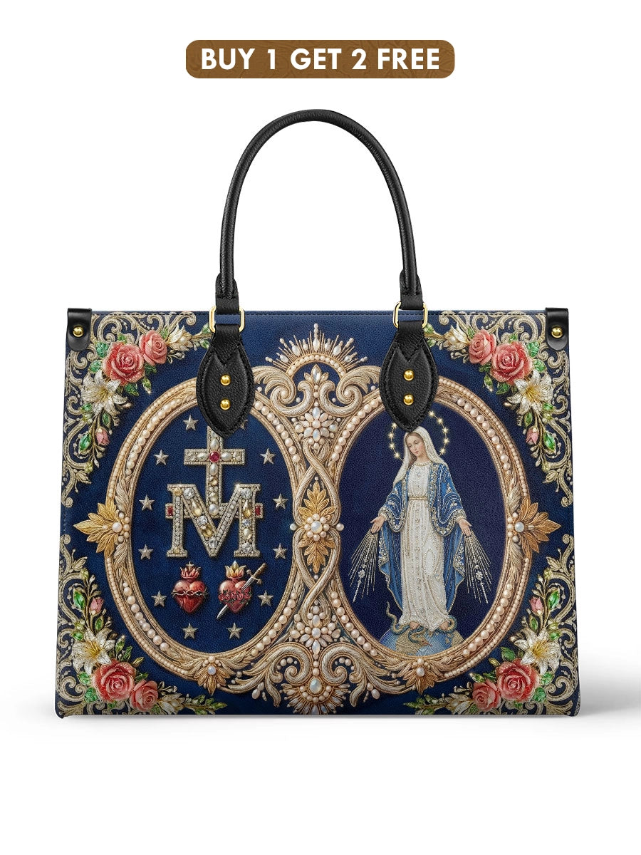 Inspired by the Miraculous Medal and the loving promise of Our Blessed Mother, this leather bag is a quiet expression of faith you can carry every day.