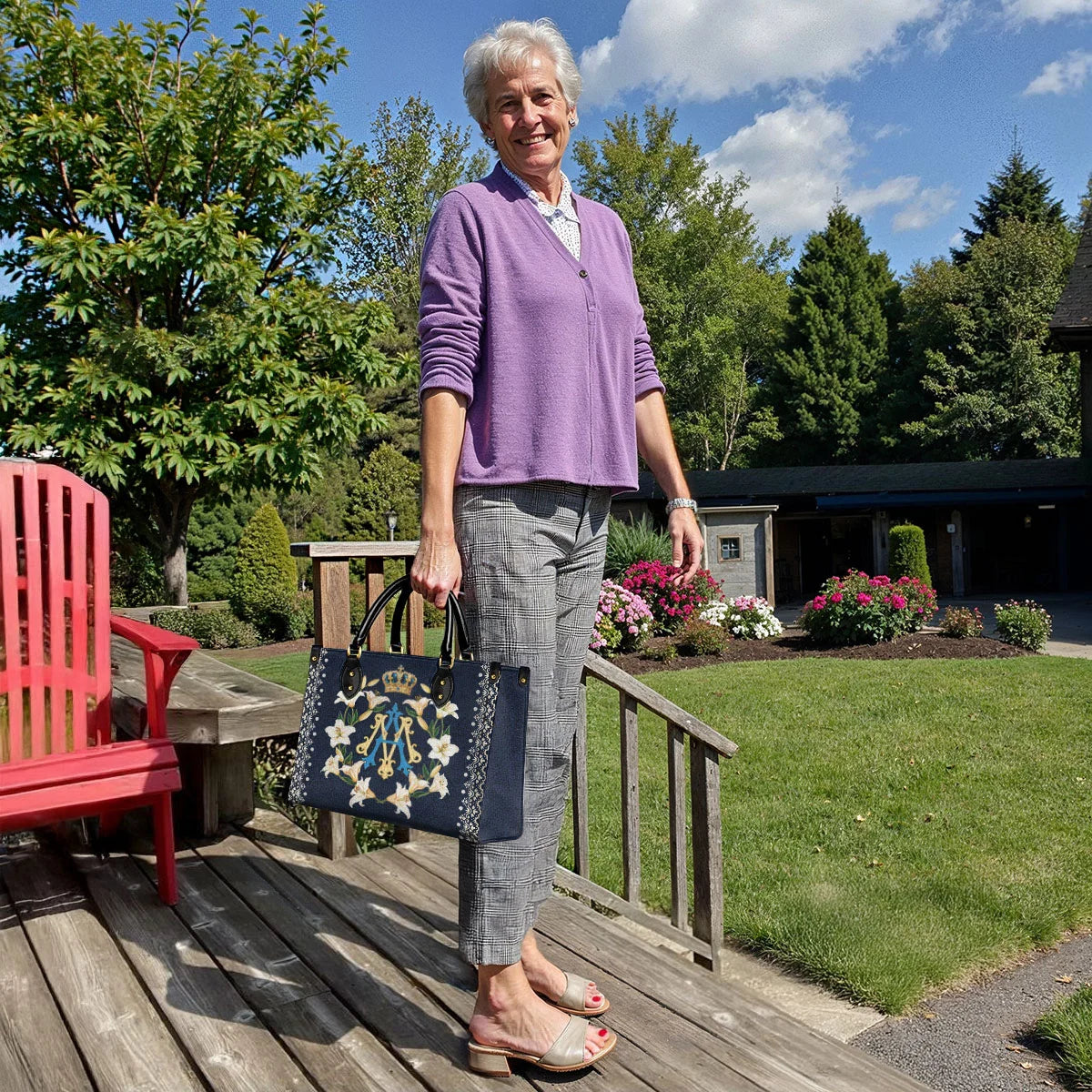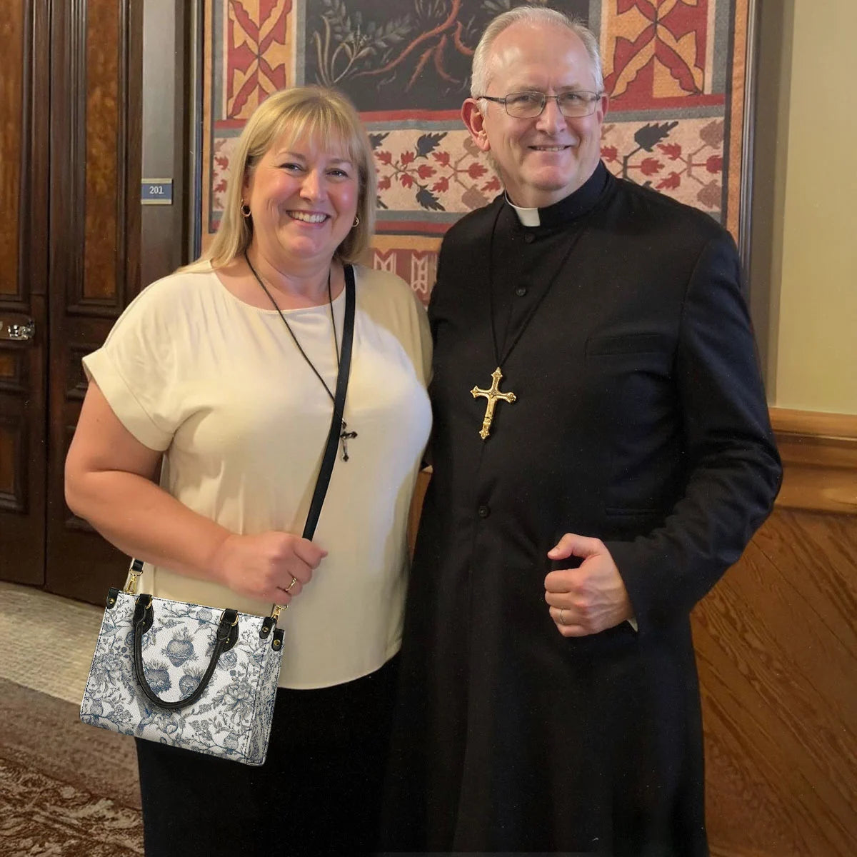 - MEDIUM (13.8”× 10.6”× 5.5”): Graceful and versatile. Holds your Missal, devotional journal, water bottle, hand cream, wallet, phone, and even a folded shawl for chilly chapels. Perfect for parish meetings, adoration, or daily errands with purpose.