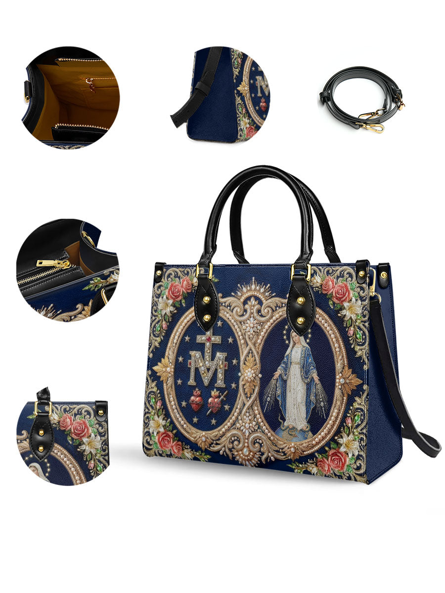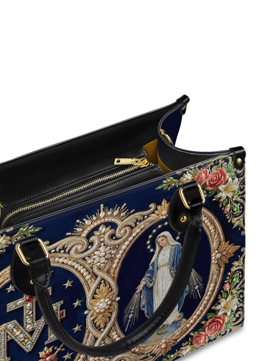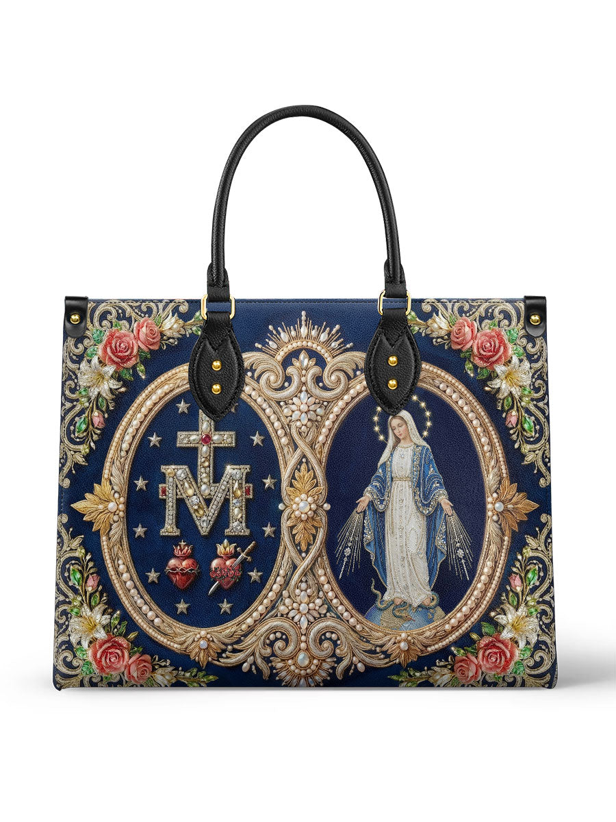 Inspired by the Miraculous Medal and the loving promise of Our Blessed Mother, this leather bag is a quiet expression of faith you can carry every day.