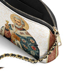 Designed with grace and intention, the Catholight Crossbody Bag is a quiet expression of faith and elegance. Its compact form, gold-accented chain strap, and symbolic artwork make it a meaningful companion for both daily life and sacred moments.