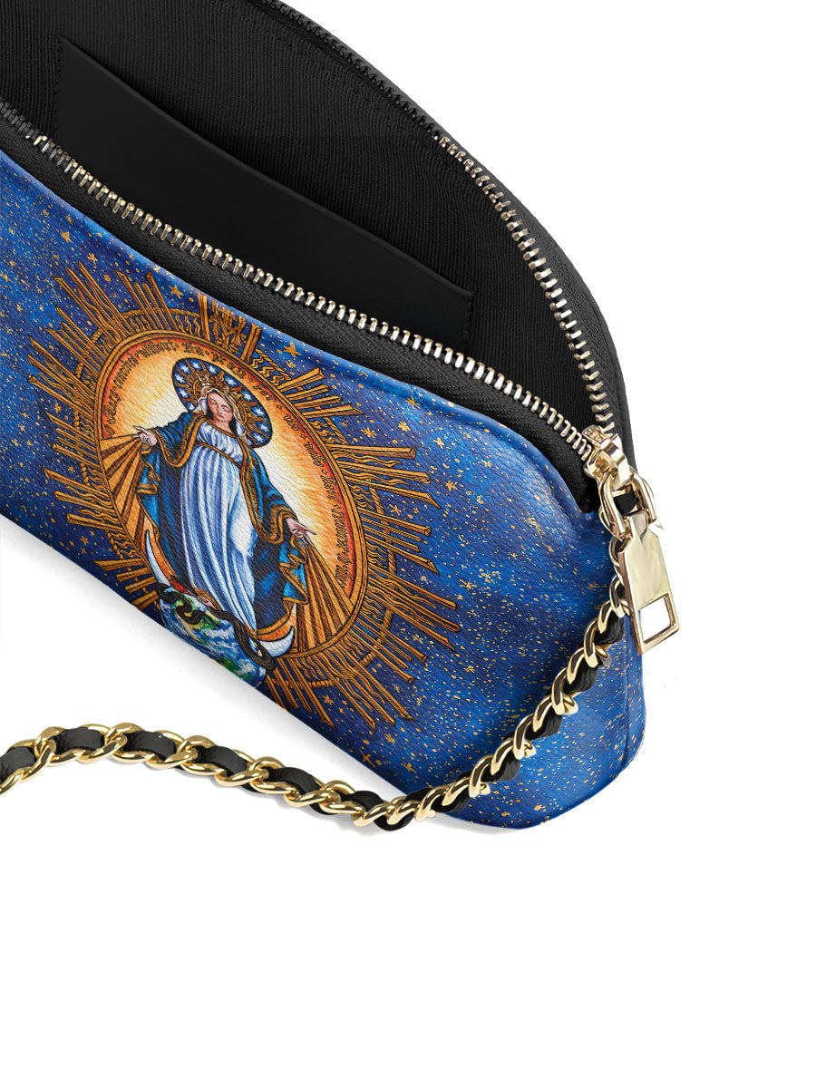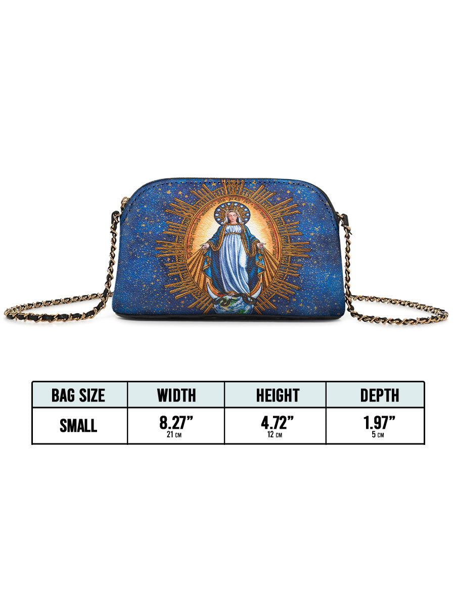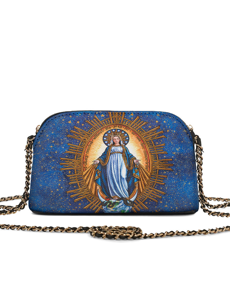 Designed with grace and intention, the Catholight Crossbody Bag is a quiet expression of faith and elegance. Its compact form, gold-accented chain strap, and symbolic artwork make it a meaningful companion for both daily life and sacred moments.